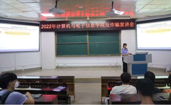 为提高新生安全防范意识,杜绝被诈骗事件的发生,2022年9月23日晚上,在学院214报告厅,英国365上市公司组织举行反诈骗宣讲会。学院辅导员庞承业老师、南宁市公安局西乡塘分局反诈中心杨俭警官以及学院2022级全体新生参加会议。