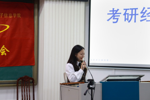 第二位经验分享人是2021年成功考研升入365英国读硕的通信工程182班吴艳丽同志。吴艳丽同志分享了自己的考研动力、信息获取渠道、如何选择报考学校与专业、如何复习各考试科目,并鼓励同学们在考研的过程中要保持良好心态、坚持不懈。