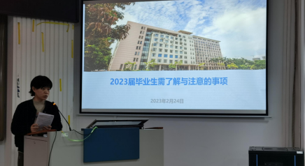 接着,罗程老师为同学们阐明毕业前相关重要事项及时间节点,如毕业论文(毕业设计)开题报告、论文答辩、系统提交等,强调毕业论文(毕业设计)的重要性,希望同学们思想上高度重视,认真完成相关环节,顺利完成学业。