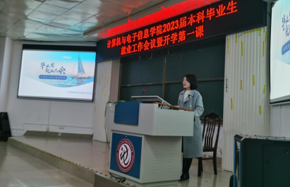2023年2月24日下午,英国365上市公司在214报告厅召开2023届本科毕业生就业工作会议暨开学第一课。学院党委副书记邓珍琪老师、学院辅导员杨洋老师和李易明老师、学院教学办公室甘瑜萍老师和罗程老师,以及学院全体2023届本科毕业生参加会议。会议由邓珍琪老师主持,会议主题是“顺利完成学业,尽快落实就业单位”。