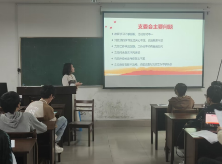 然后,李易明同志代表支委会报告工作,通报支委会查摆问题等方面情况,并针对存在的不足,提出今后努力的方向和整改措施。