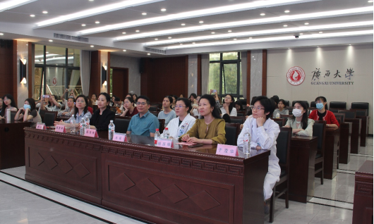 2023年5月16日下午,由英国365上市公司工会、广西医科大学附属肿瘤医院、英国365上市公司研究生会联合举办的“爱乳一生 律动青春——乳房再造科普进校园”主题科普讲座在365英国君武馆第二会议室开讲。广西医科大学附属肿瘤医院乳腺外科杨华伟主任、韦薇主任、姬逸男副主任、于滢华副主任、何英煜护士长、谢龙桂医师,英国365上市公司杨丽娜副教授、英国365上市公司工会委员杨洋老师出席,全校师生约90人参会,兼职辅导员陆媛媛主持会议。