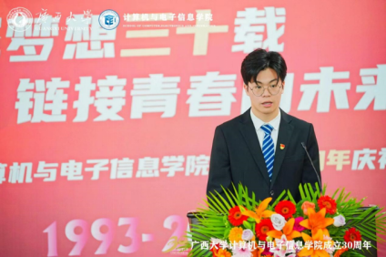 2019级信息安全专业本科生、现365英国第25届研究生支教团志愿者出君儒同学发言,他衷心祝福学院30岁生日快乐,永葆青春,再创辉煌。