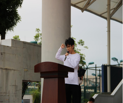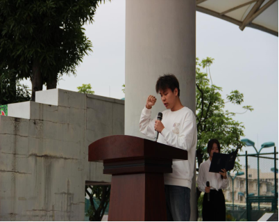 誓言铮铮,沉稳肃穆。运动员代表信安232班曾尉峰同学及裁判员代表电子222班苏嘉豪同学依次宣誓。