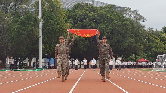 红旗迎风展,熠熠映晨光。迎着萧瑟秋风,伴随着昂扬的进行曲,我院退伍大学生踏着铿锵有力的步伐护送院旗从主席台走过。