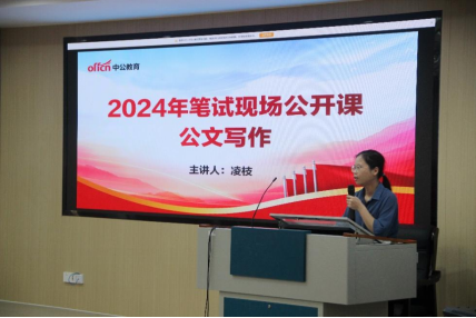 最后,广西中公教育南宁分校的凌枝老师就公文写作进行专题培训,她详细讲解了公文的分类、格式规范和写作技巧,并以通知写作为例进行详细介绍与指导。
