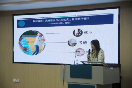 接着,周开印学长及其团队成员进行就业与学业规划经验分享。周开印学长从用人单位选人标准、把握面试机会和提升面试能力三个维度进行深入浅出地讲解。团队成员黄玉宇老师和邱瑜之老师分别就“海外留学规划”及“如何选择和提升自己的软实力”两个话题进行分享,从留学趋势、申请材料准备到背景提升等方面为同学们指明方向。