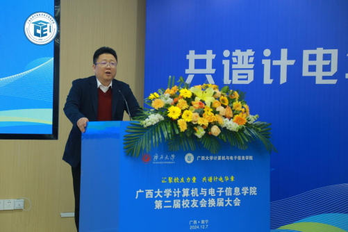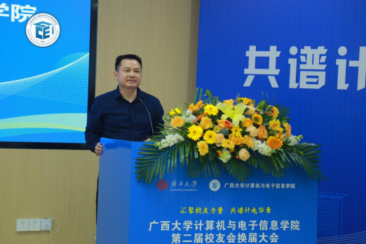 计算机应用专业1991级校友梁晓东作为校友代表发言,他感谢学院对自己多年的指导和栽培,并表示一定会秉承“勤恳朴诚”的校训,以“凝聚校友、服务校友、服务母校、服务社会”为宗旨,以身作则深耕自己的领域,不断致力于学院学科发展和校友工作,为学院高质量发展做出新贡献。