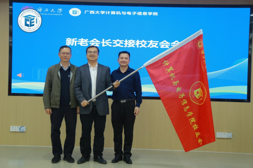 图7 学院党委书记赵进创见证新老会长交接校友会会旗