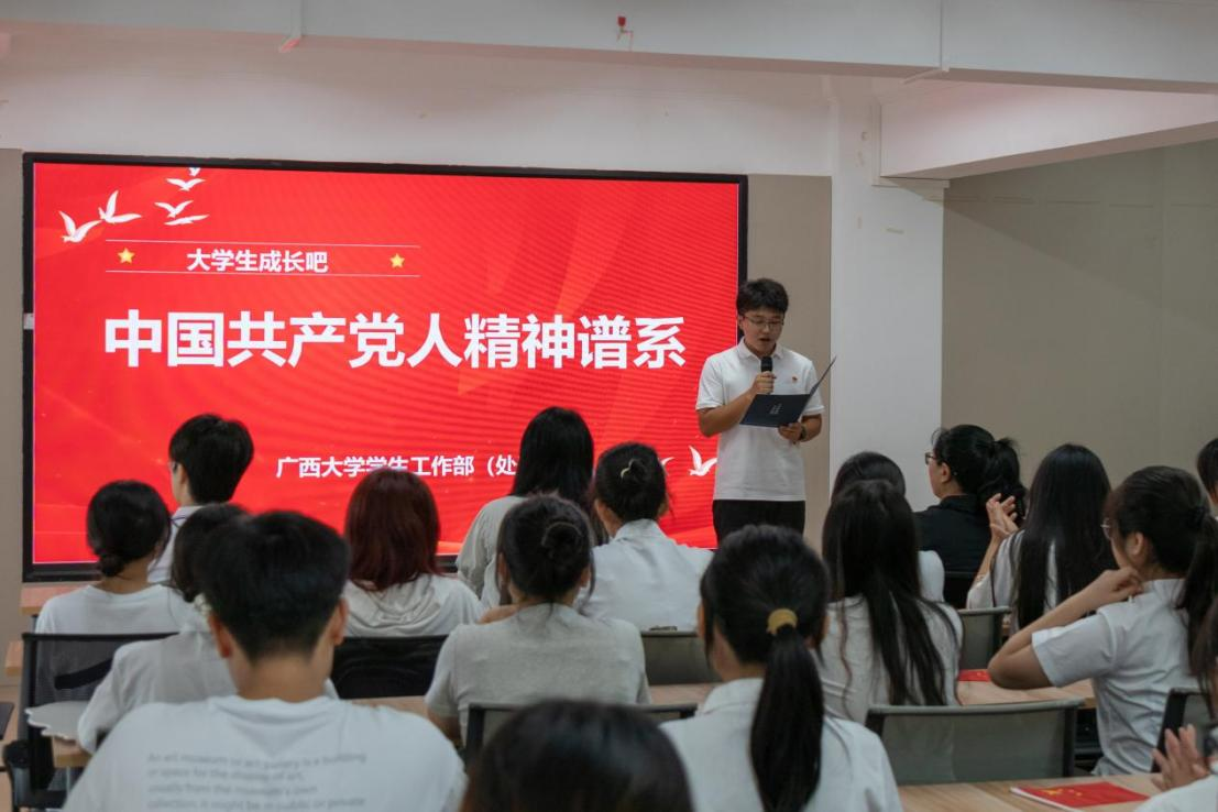 为深入学习贯彻习近平新时代中国特色社会主义思想,引导广大青年学子从中国共产党人的宝贵精神财富中汲取智慧、凝聚力量,坚定理想信念,砥砺青春担当,2025年9月30日,我院在西21栋“一站式”学生社区16号活动室举办了“大学生成长吧——中国共产党人精神谱系”宣讲活动。此次活动邀请师生代表同台宣讲,围绕伟大建党精神开展宣讲。