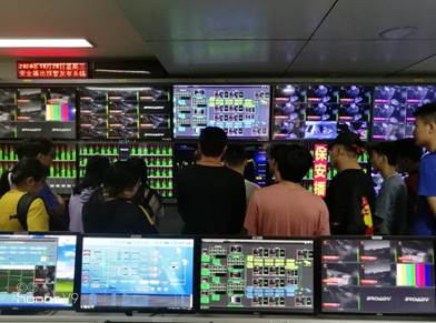同学们在广西广电网络技术中心地球站(室内)进行认知实习