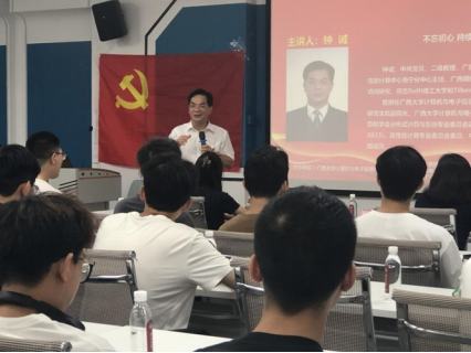 钟诚教授以 “不忘初心,持续学习,做推动计算学科发展的实践者”为题,结合自己的求学及工作经历深刻阐释了本次活动的核心主题。他强调,“不忘初心”既是党员对身份的坚守和践行宗旨意识,也是教育工作者对教书育人职责的履行;“持续学习”则是推动个人成长与专业发展的关键动力;“实践者”就是师生以实际行动弘扬传承以爱国主义为底色的科学家精神,推动学科进步。
