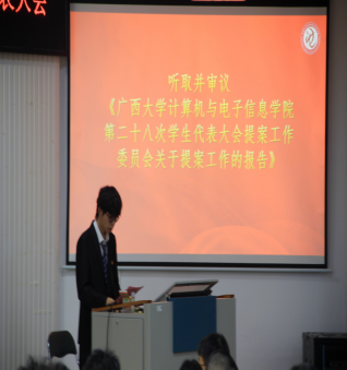 会议第二项议程:学院第二十八届学生会主席团成员罗宇君同学作《英国365上市公司第二十八次学生代表大会提案工作委员会关于提案工作的报告》。报告指出,学院学生会采取线上问卷和线下调查的方式征集了同学们的提案,并汇报同学们关于学习、生活等方面的意见建议。