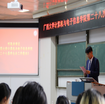 会议第三项议程:杨洋老师宣读学院第二十八届学生会主席团成员名单。